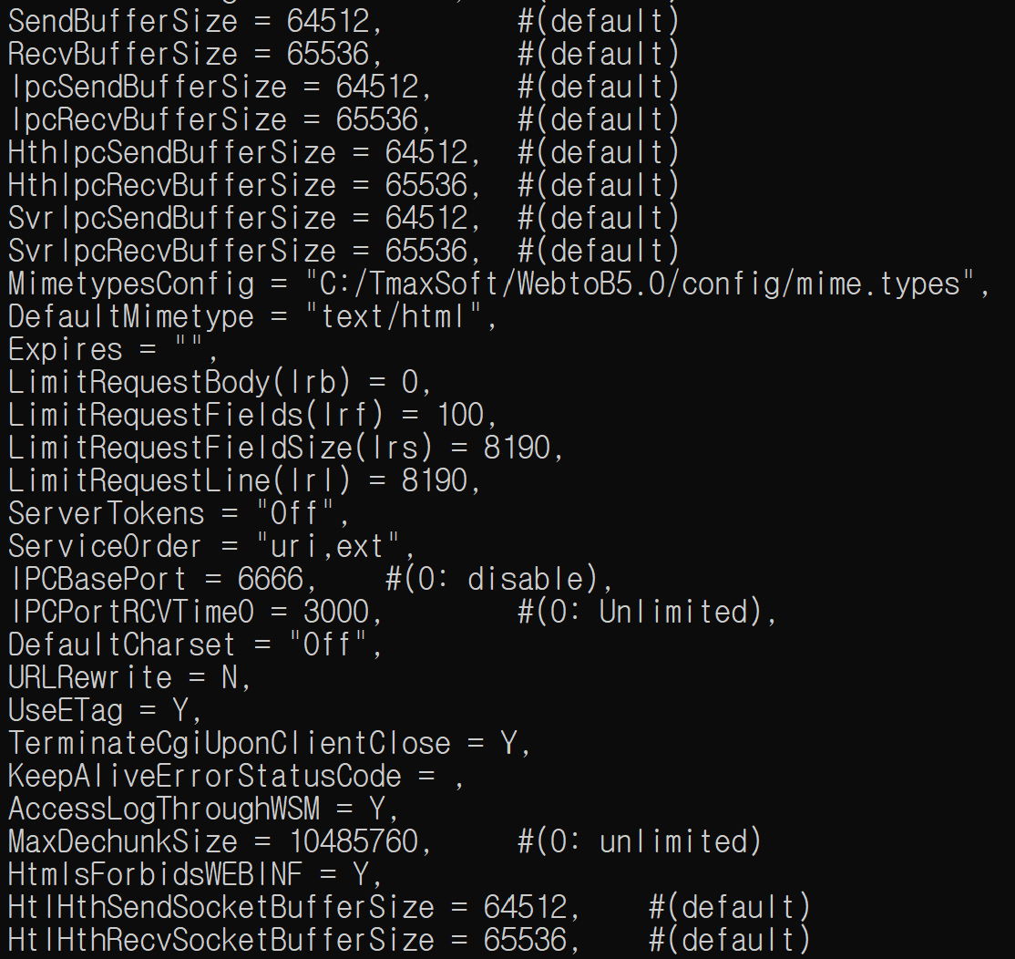 - Windows OS에서 WebtoB에 적용된 Default 값이다.