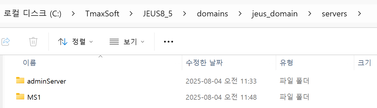 - 경로는 JEUS_HOME/domains/jeus_domain/servers/adminServer 파일을 삭제해야 한다.