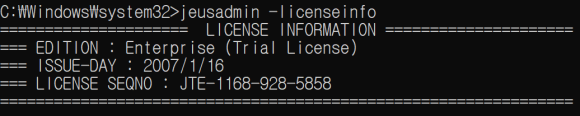 콘솔 창에서 jeusadmin -licenseinfo 입력