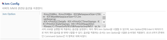 - JVM 옵션으로도 적용시켜줄 수 있으며, 재기동이 필요한 작업이다.