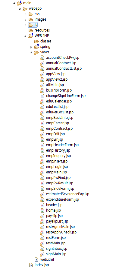 - 인사관리, 출결관리, 급여관리, 교육관리, 전자결재(미완) 구현