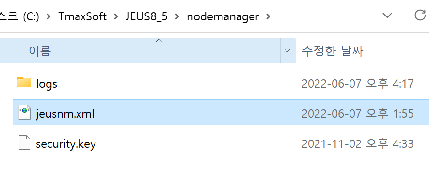 - JEUS_HOME/nodemanager 경로에 jeusnm.xml 파일이 있다.