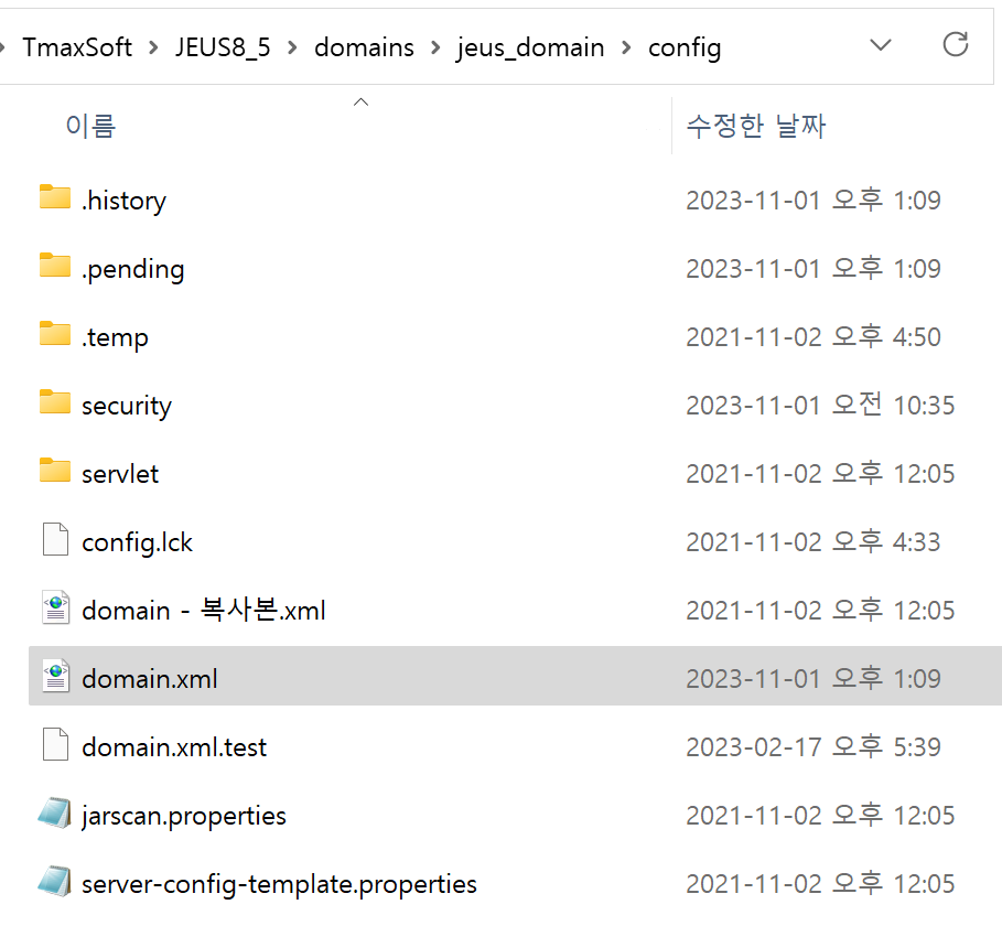 - JEUS_HOME/domains/jeus_domain/config 경로에 domain.xml 파일이 있다.