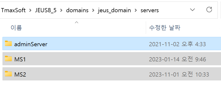 - JEUS_HOME/domains/jeus_domain/servers 안에 있는 파일을 전부 삭제한다.