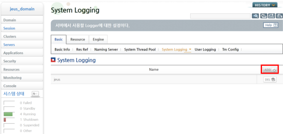 5. 추가 로거 설정을 해야 하는 경우(JEUS DEBUG 로그 필요시 사용)