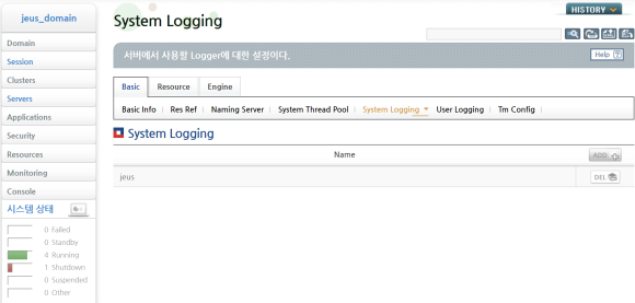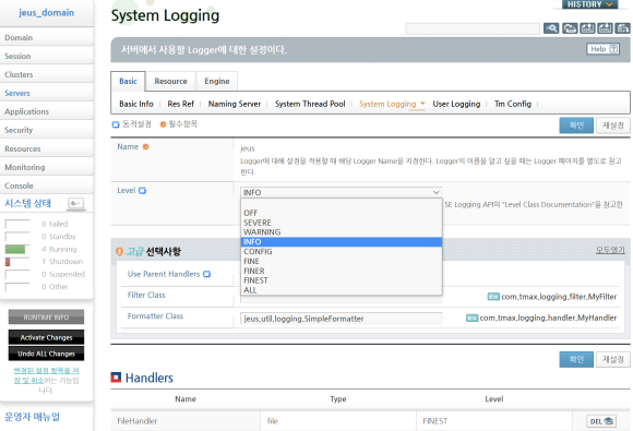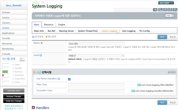 - 주요 로거에는 jeus.servlet, jeus.net, jeus.session, jeus.jdbc 가 있다.