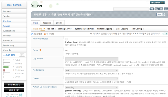 - JEUS MS 별 Log Level 을 설정하는 방법이다.